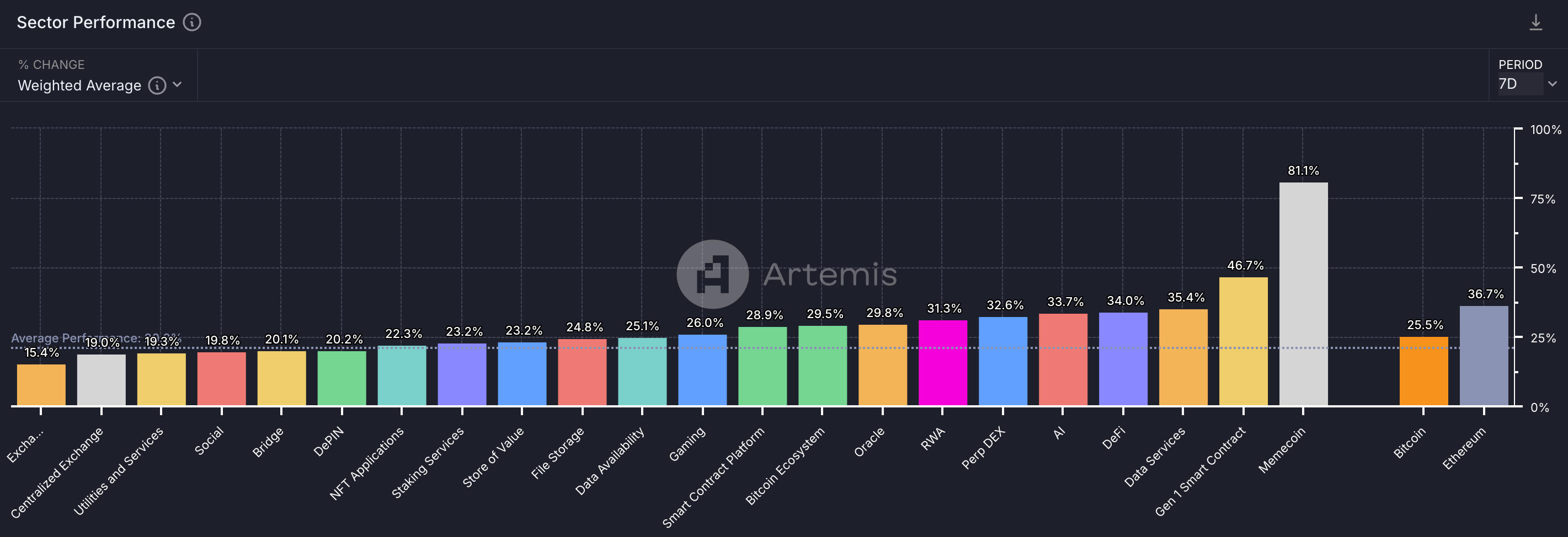 That said, we continue to see dispersion within the altcoin market that active managers have been able to capitalise on. Only 50% of macro sectors have outperformed BTC over the past week.