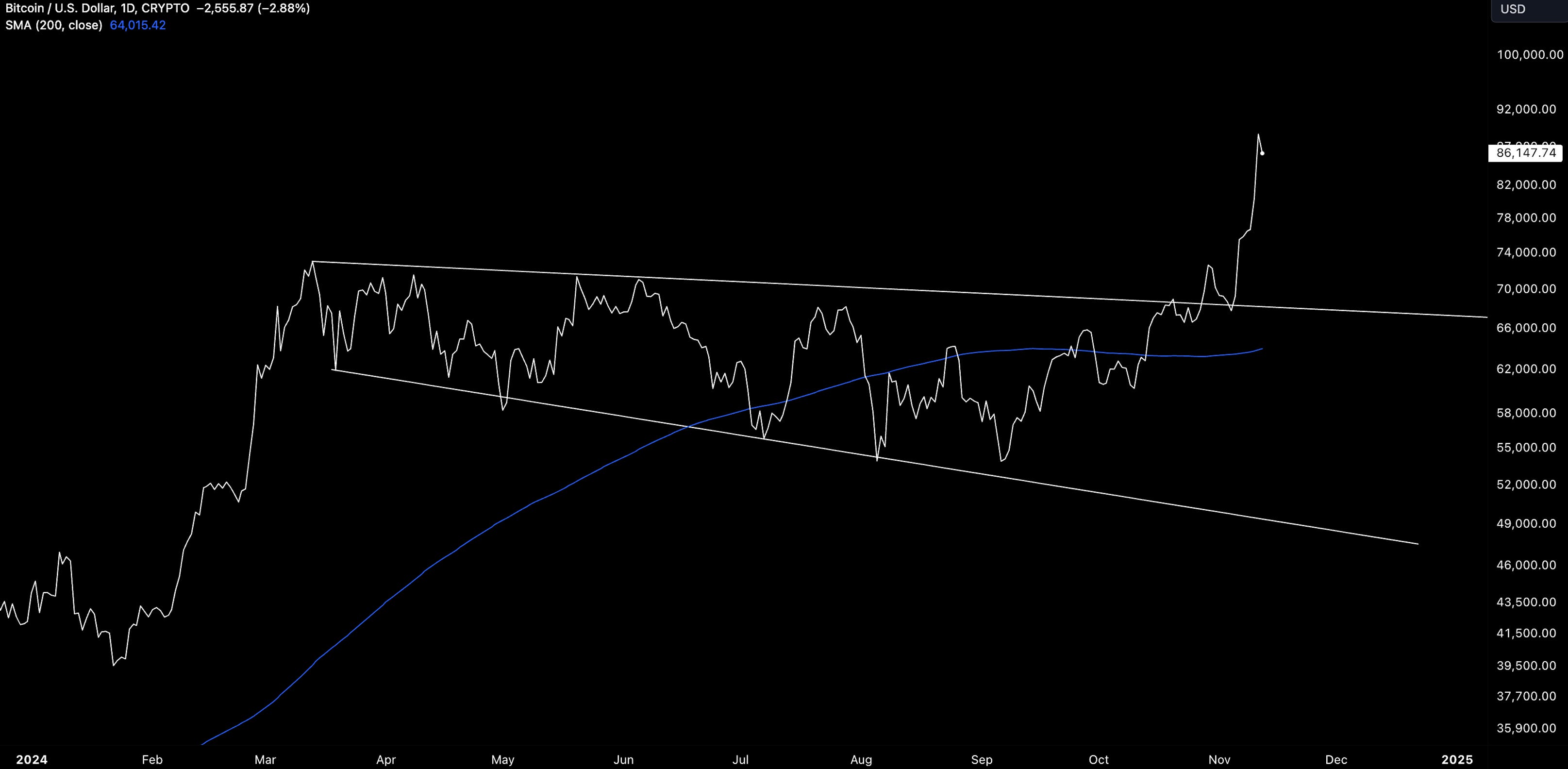 Following the US election last week, the S&P and NASDAQ both printed new highs while BTC has continued its rally towards $90k in rapid fashion.