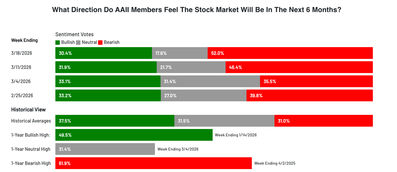 The American Association of Individual Investors survey shows bearish sentiment above 50%, reinforcing the extent of the recent shift in positioning.