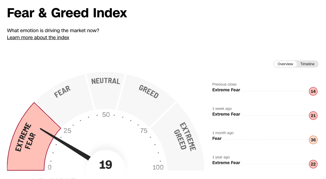 Positioning has skewed defensively in risk assets like equities, reflected in sentiment gauges such as the CNN Fear & Greed Index now moving into extreme fear.