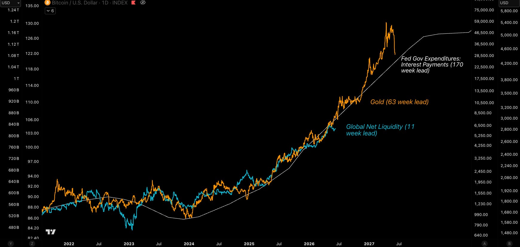 Higher rates and wider deficits mechanically increase interest outlays—payments that must be made—which inject cash into the system and support liquidity with a lag.