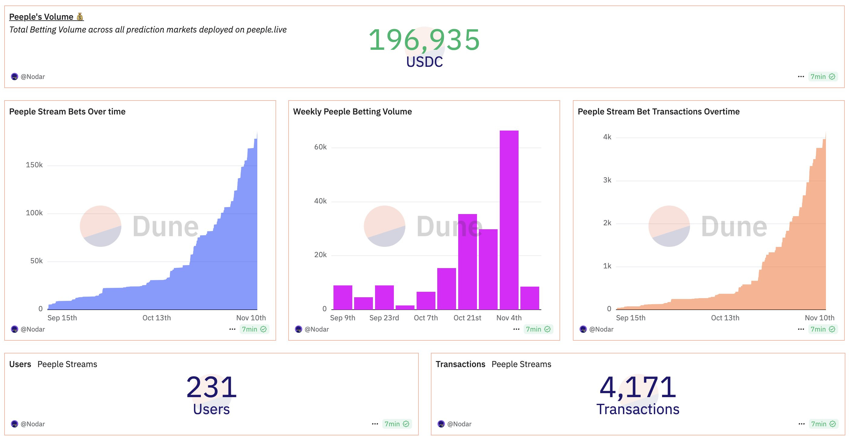 One early-stage project seeing initial PMF is Peeple.live, which enables users to bet on outcomes tied to live streams, such as gaming.
