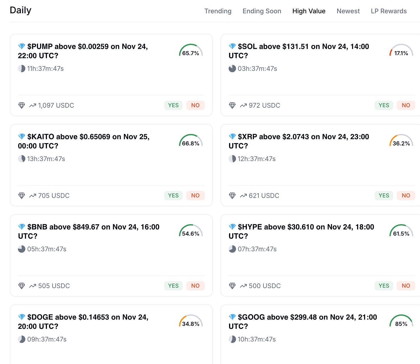 Projects like Limitless on the Base blockchain allow users to bet on short-term price moves using a CLOB—similar to an exchange.