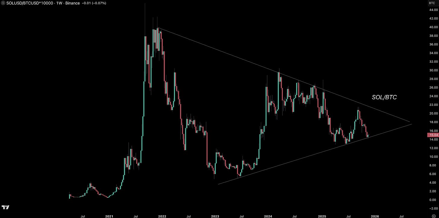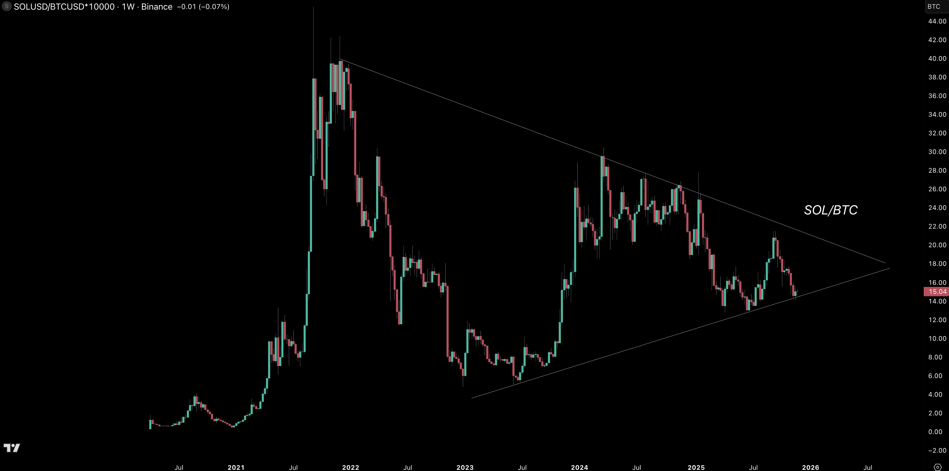 Interestingly, the broader structures of relative ratios for key names remain in tact and at support, such as SOL/BTC.